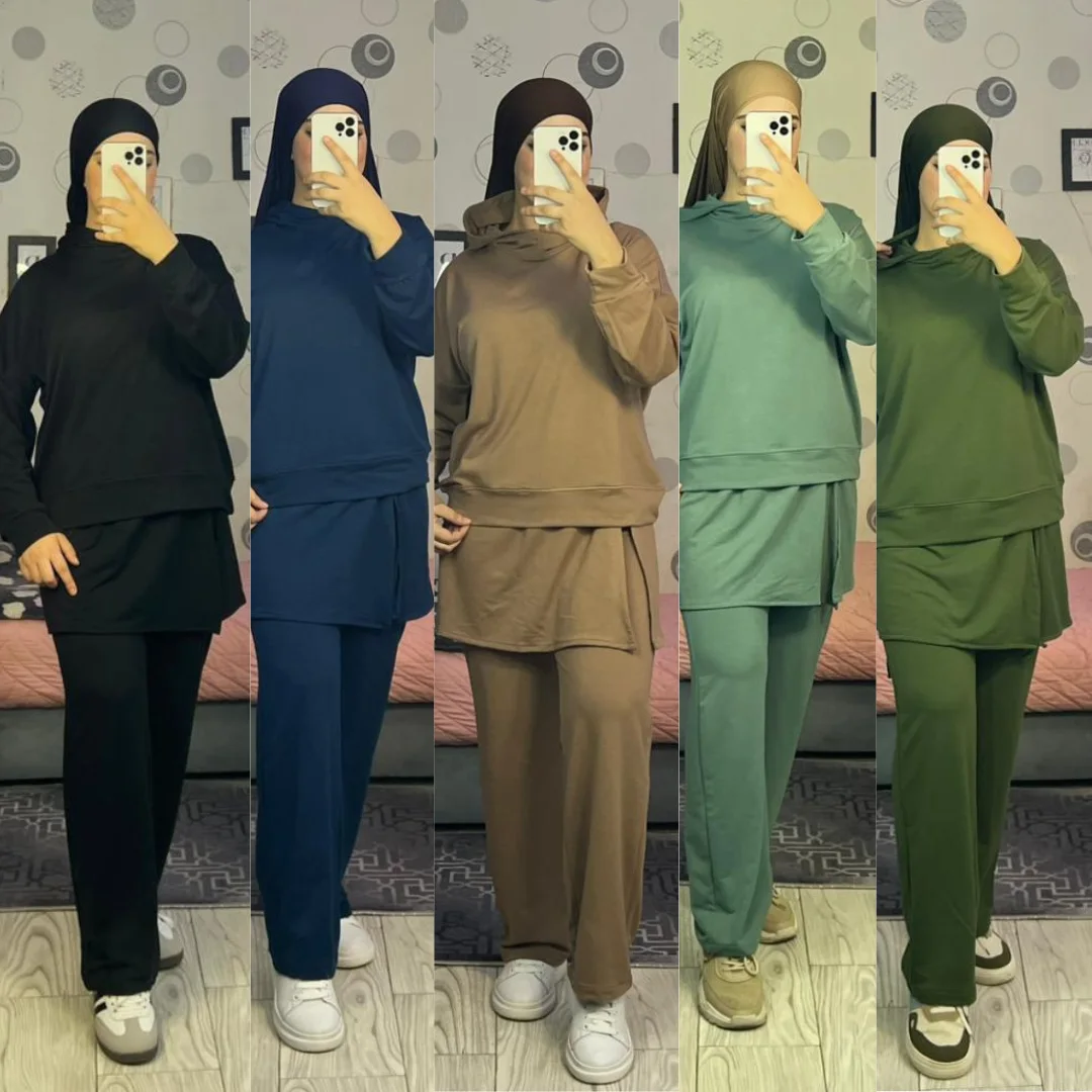 اختاري طقماً يجمع بين الراحة، الحشمة، والأناقة الرياضية.
